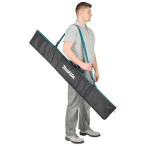 Makita E-05664 Bolsa de trilho de guia acolchoada premium para trilhos de guia de serra de até 150 cm. - Protege seus trilhos guia para facilitar o transporte e armazenamento - Leve, mas durável, feito de poliéster 1680D resistente a rasgos e repelente à água com forros acolchoados para proteção e durabilidade a longo prazo - Acomoda dois trilhos Makita de 139,7 cm, ou dois Makita 99 cm, ou um de cada guia de tamanho - Tamanho universal que também serve para trilhos competitivos Festool, DeWALT, Triton e outros trilhos de guia de serra de até 150 cm de comprimento - Tiras ajustáveis de gancho e laço para proteger os trilhos de guia