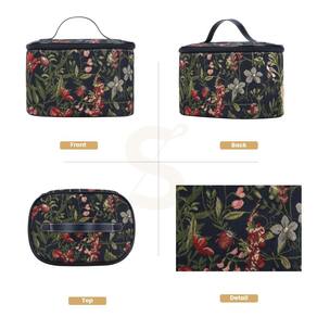 Um estojo de higiene e beleza feminino de tapeçaria de camada única com grande capacidade; ideal para armazenar produtos de higiene pessoal, cosméticos e maquiagem.