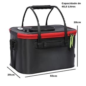 Design Dobrável e Portátil: Feita com material leve e dobrável, facilitando o transporte e o armazenamento quando não está em uso. Ideal para pescadores que precisam de uma solução prática para manter iscas vivas frescas durante a pesca. Material Durável e Respirável: Construída com tecido resistente e permeável, que permite a circulação de água e ar para manter as iscas vivas e saudáveis por períodos prolongados. Capacidade Adequada: Atende às necessidades específicas de armazenamento de várias quantidades de iscas vivas, desde pequenas minhocas até peixes menores. Fechamento Seguro: Equipada com fechos ou zíperes seguros que garantem que as iscas não escapem durante o transporte ou enquanto você está em movimento. Versatilidade de Uso: Além de ser utilizada como viveiro para iscas vivas durante a pesca, também pode ser Utilizado para transportar e armazenar peixes capturados ou outros equipamentos de pesca essenciais. Fácil Limpeza: Superfície interna projetada para ser fácil de limpar, permitindo remover facilmente resíduos e detritos de iscas ou peixes após o uso. Alça de Transporte Confortável: Projetada com alças ou alça de ombro ajustável para facilitar o transporte, proporcionando conforto mesmo quando a bolsa está cheia. Especificações: 50cm x 29cm x 28cm, Capacidade 40,6 Litros Marca: Não Informado Ean: 7894037003003