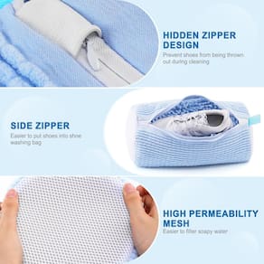 M-Better Bolsa para máquina de lavar sapatos, bolsa de lavagem de sapatos com zíper invisível com abertura lateral para lavadora e secadora, sacos de lavanderia de sapatos para tênis, bolsa de limpeza de sapatos reutilizável para todos os tamanhos de sapatos (azul, 2 peças) - ?Bolsa para máquina de lavar sapatos para ajudar a libertar suas mãos?O saco de lavagem de sapatos M-Better é projetado com orifícios de malha e fibras fofas para limpar seus sapatos em casulo de 360°. A lavagem à máquina é mais limpa do que lavar à mão comum, economiza mais tempo, mais economia de trabalho, em comparação com escovas para escovar seus sapatos, esta bolsa de limpeza de sapatos pode proteger seus sapatos e prolongar a vida útil. Você só precisa colocar os sapatos no saco de lavar sapatos, jogá-lo na máquina de lavar, um momento para comprar um par de sapatos novos. - ?Design de zíper invisível e abertura lateral]: o novo saco de lavagem de sapatos possui um design de zíper invisível que não solta ou abre durante a lavagem, e o zíper pode ser dobrado no elástico para evitar que fique preso ou arranhe outras roupas. Em comparação com o zíper superior da primeira geração, os novos apresentam um design de zíper lateral, facilitando a colocação dos sapatos nas capas de sapatos. Esta bolsa de limpeza de sapatos possui um design de alça superior para facilitar a suspensão e armazenamento após a lavagem. - ?Atualização 20.000 + fibras fofas e malha sanduíche?Este saco de lavagem de sapatos é feito de um tecido de estrutura composta de malha sanduíche e mais de 20.000 fibras fofas. O tecido chenille tem um peso de 1450gsm, uma solidez da cor de grau 3 ou superior, e a coluna de pilha é espessa e alongada até 3 cm, o que tem um efeito de limpeza muito melhor do que apenas tecido de malha. A parte superior e inferior são feitas de tecido de malha sanduíche, para que a água com sabão possa fluir facilmente através da malha, alcançando o melhor efeito de limpeza. - ?Aumente o tamanho, serve para todos os tamanhos de sapatos?A bolsa de limpeza de sapatos melhorada é maior, medindo 38 cm de comprimento e 18 cm de diâmetro, oferecendo mais espaço do que a maioria das bolsas de sapato no mercado. Na maioria dos casos, um saco de lavagem de sapatos pode conter 1 par de sapatos, mas se você quiser dar a cada sapato uma limpeza completa, você também pode colocar cada sapato em um saco de lavagem de sapatos separado; este saco de lavagem de sapatos é adequado para todos os tipos de sapatos, incluindo tênis masculinos, sapatos femininos, sapatos infantis e sapatos casuais. - ?Reutilizável e durável?Esta bolsa para máquina de lavar sapatos é feita de tecido chenille de alta qualidade, que pode ser limpo repetidamente e utilizado muitas vezes, pendurar para secar é rápido e conveniente, não apenas pode ser utilizado para sacos de limpeza de sapatos na máquina de lavar, mas também pode ser utilizado como um organizador de sapatos diário, bolsa organizadora de sapatos de viagem, se você quiser liberar suas mãos, basta escolher uma bolsa para máquina de lavar sapatos!