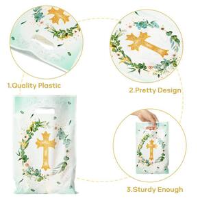 -?Design de tema religioso?A sacola de lembrancinhas para festas foi projetada para atividades da igreja cristã, que pode ser para embalar presentes de batismo. Sacolas de presente de 50 unidades são embrulhadas em um saco plástico para garantir que não se estraguem.