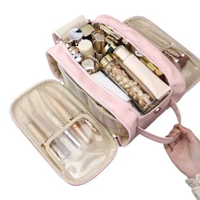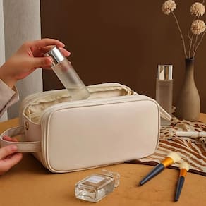 O forro interno resistente não apenas facilita a limpeza, mas também protege seus produtos de possíveis vazamentos. Isso garante que você possa transportar seus cosméticos com a tranquilidade de não ter surpresas desagradáveis na bolsa ou na mala.