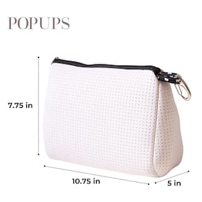 Atualize sua experiência de viagem com a bolsa de maquiagem grande POPUPS com zíper, projetada como uma boa bolsa multifuncional para mulheres e homens. Seu material de neoprene 100% luxuoso à prova d'água, livre de manchas e respirável garante que seus pertences permaneçam protegidos, enquanto o zíper durável mantém tudo seguro. Esta bolsa de viagem versátil para homens e mulheres vem em uma variedade de estampas e cores exclusivas, tornando-a o essencial de viagem ideal para todos. Medindo 19,6 x 27,3 x 12,7 cm, é espaçoso o suficiente para caber todos os seus itens essenciais de viagem para mulheres e homens, mas dobrável para economizar espaço quando necessário.