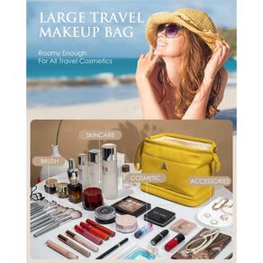 - ?Design elegante e prático?A bolsa de maquiagem de camada dupla Vogewood é feita de couro PU premium e apresenta um design exclusivo com áreas de armazenamento superior e inferior. A parte inferior é uma divisória de maquiagem para armazenamento separado de sombra, pincéis de maquiagem e outros itens. A camada superior tem uma grande abertura para fácil acesso e duas pequenas camadas para batom, brincos. Também vem com bolsas organizadoras de cordão como presente para ainda mais espaço de armazenamento.