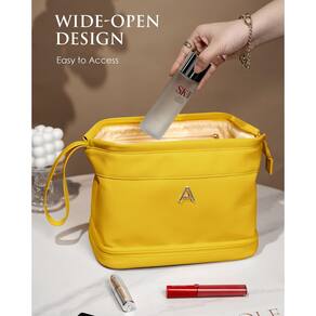 - ?Materiais de alta qualidade?Nossa bolsa de higiene de viagem é feita de tecidos de couro macios, leves e de alta qualidade que protegem sua maquiagem de arranhões e respingos. Também é à prova d'água, para que você não precise se preocupar com respingos de água ao lavar as mãos.