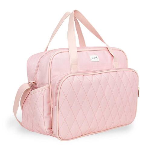 Coleção versátil, pensada para mães despojadas e que querem ter tudo organizado a cada saída, pois as peças são amplas e com bastante bolsos. É confeccionada com material de fácil limpeza, com toque emborrachado, super resistente. A bolsa colorê acompanha trocador coordenado com o material da bolsa, possui bolso interno com zíper, bolsos laterais, bolso frontal e mais um bolso nas costas. Bolso frontal e laterais com detalhes em matelassê. Alça removível.