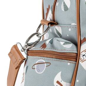 - Alças de mão fixas e alça transversal regulável para maior conforto dos pais