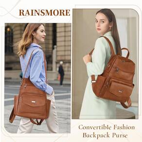 Mochila RAINSMORE conversível feminina de couro PU, bolsa de 33,3 cm, mochila de designer para mulheres, bolsa feminina fofa para viagens, trabalho, faculdade, moda feminina, antifurto, bolsa tiracolo 1. Nossas mochilas femininas modernas são feitas de vários materiais de alta qualidade, como couro vegano de poliuretano macio, resistente a arranhões, resistente a rasgos, acessórios de metal resistente, alça de ombro longa removível e forro de tecido macio. 2. A mochila para laptop já percorreu um longo caminho de ser monótona e utilitária. Para as mulheres elegantes e modernas em movimento, uma mochila antirroubo para mulheres é mais do que apenas um acessório funcional; é uma declaração de moda. 3. Esta mochila feminina tem uma grande abertura vertical na parte superior para facilitar o carregamento. 1 bolso interno grande, 1 bolso interno com zíper, 2 bolsos internos pequenos, 3 bolsos frontais, 2 bolsos laterais, 1 bolso traseiro com zíper e um chaveiro removível. 4. Você pode facilmente colocar documentos de escritório, telefones celulares, garrafas de água, roupas e suas necessidades diárias nesta mochila conversível para mulheres. Características: Material: Couro PU Vegano + Poliéster Cor: marrom/preto Detalhes da estrutura: - 1 compartimento principal grande; - 1 compartimento acolchoado (33,3 cm). - 1 bolso interno com zíper; - 2 compartimentos internos; - 1 bolso traseiro antifurto; - 2 bolsos frontais com zíper; - 1 bolso magnético de encaixe; - 2 bolsos laterais; Dimensões: * Mochila feminina : 32 × 15,50 × 35,00 cm (32 cm x 15,5 cm x 35 cm) A embalagem inclui: * 1 bolsa de mochila conversível + 1 alça de fivela - Conversível e confortável: a mochila conversível RAINSMORE para mulheres oferece várias opções de transporte para ajudar você a se adaptar a diferentes ocasiões. Você pode carregar esta mochila moderna como uma mochila feminina normal pelas alças ajustáveis. E você pode levar a mochila feminina de couro como uma bolsa de ombro única, carregando-a com sua alça de fivela removível. Quando você sentir fadiga no ombro após um longo tempo de transporte, você pode levantá-la como uma bolsa de mão pela alça superior - Estrutura de armazenamento: nossas mochilas femininas estão equipadas com compartimento acolchoado que cabe até 33,8 cm e protege contra impactos. Bolso interno com zíper e compartimentos internos da mochila feminina para melhor organização. Há dois bolsos com zíper e um bolso magnético na frente para manter suas coisas extras bem organizadas. E dois bolsos laterais encaixam em garrafa de água e guarda-chuva no lugar. Além disso, esta mochila com bolso traseiro antirroubo mantém seus itens valiosos seguros - Estilo elevado: esta mochila de designer versátil para mulheres é projetada para a mulher moderna que valoriza a conveniência e a elegância em seus acessórios diários. Esta mochila feminina moderna é feita de couro vegano PU de alta qualidade, com texturas requintadas e uma sensação macia. A linda bolsa para laptop RAINSMORE não apenas protege seus pertences, mas também reflete sua estética pessoal e identidade profissional, é a combinação perfeita de funcionalidade e moda - Adequada para várias ocasiões: esta bolsa de mochila conversível para mulheres apresenta artesanato incrível e design conveniente, também pode servir como um acessório versátil que transita perfeitamente da sala de reuniões para a cafeteria, permitindo que você mantenha uma aparência coesa e polida durante todo o dia. Além disso, esta bolsa de couro moderna para mulheres é um presente fantástico para mulheres em basicamente todos os festivais - Durabilidade e segurança: a mochila feminina RAINSMORE vem com couro vegano PU premium, projetada para uso prolongado sem rasgar e rasgar. A mochila feminina moderna apresenta um design avançado de superfície à prova d'água, garantindo que seus pertences permaneçam secos mesmo em dias chuvosos. Nossas elegantes bolsas femininas possuem um chaveiro removível dentro do bolso magnético, o que economiza tempo procurando chaves e reduz a probabilidade de perder as chaves