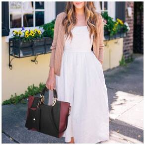 MATERIAL Esta bolsa feminina é feita de couro 100 vegano com texturas de búfalo. Eco friendly e nenhum animal foi prejudicado. Altamente anti riscos e resistente a rasgos, não é fácil ficar fora de forma. Design elegante Projeto de bloco de duas cores detalhado com ferragens em tom dourado de alta qualidade, zíperes e tachas inferiores. As alças superiores em couro laminado são muito confortáveis para transportar e são especialmente reforçadas por uma decoração de metal durável. Bolsos funcionais Grande capacidade com um bolso interno com zíper na parede posterior e dois bolsos internos com a parte superior aberta. Dimensão 39 x 29 x , ajuste em Macbook de testado, queda da alça , pulseira 19 x . Vem com uma alça de ombro ajustável e removível. Ocasiões Perfeito para namorar, fazer compras, trabalhar, viajar, vocação, uso diário, etc. Belo presente para famílias, esposa, amigos, pais em qualquer momento significativo aniversário, aniversário, feriados, dia de celebração Marca: Não Informado