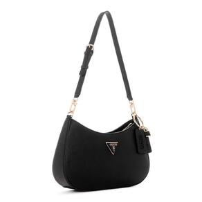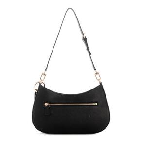 Bolsa de ombro GUESS Noelle com zíper superior, preta — O interior possui 1 bolso com zíper e 3 compartimentos para cartões — Hardware dourado brilhante — l: 11,5 polegadas l: 2,75" a: 7" — Queda de ombro: 12,5 polegadas