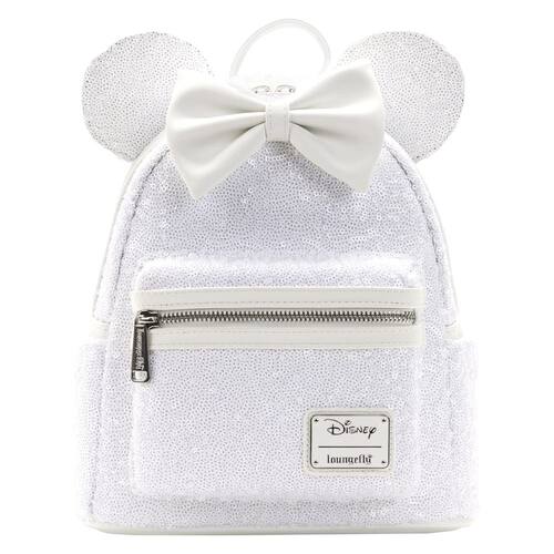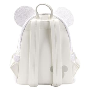 Loungefly Bolsa de ombro feminina com alça dupla de lantejoulas Minnie Mouse da Disney, Multi - Bolsa Disney oficialmente licenciada - Lantejoulas com acabamento em couro sintético e aplique de laço intercambiável. - Bolso frontal com zíper. Alças de ombro ajustáveis. Alça de transporte superior. Forro de tecido estampado. - Bolsa moderna para mulheres e jovens. Não se destina ao uso de crianças menores de 12 anos - Medidas: 23 cm L x 26,7 cm A x 11,4 cm P