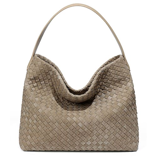 Bolsa de ombro de camurça tecida para mulheres, bolsa Hobo de camurça, bolsa elegante para trabalho e viagens, Caqui