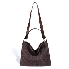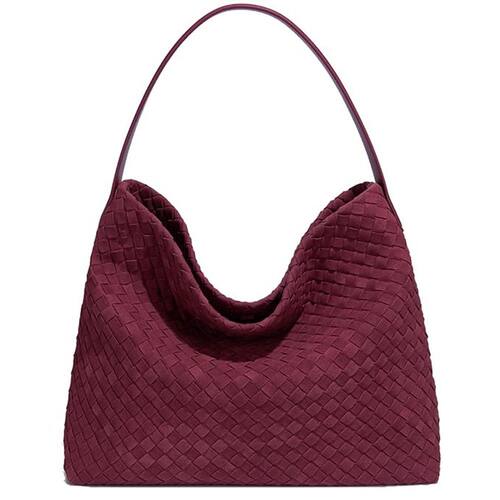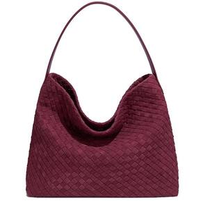 Bolsa de ombro de camurça tecida para mulheres, bolsa Hobo de camurça, bolsa elegante para trabalho e viagens, Borgonha, Tamanho único