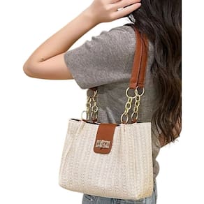 Linda bolsa de palha com forro de poliéster, alças de ombro fixas, padrão acolchoado e fecho dourado kiss lock, estilo vintage popularizado no começo do século 20, que consiste em um fecho metálico com duas hastes de pontas arredondadas. A moda boho chic é conhecida por sua mistura eclética de elementos étnicos, vintage e contemporâneos, criando um visual despojado e sofisticado. As bolsas de palha são um acessório perfeito para complementar esse estilo, oferecendo um toque natural e artesanal que é ao mesmo tempo elegante e casual. A bolsa de palha é um acessório extremamente versátil. Pode ser combinada com vestidos leves, jeans e camiseta, ou até mesmo com um look mais sofisticado. Um dos segredos é apostar em peças que ressaltem a naturalidade do material, como roupas de linho e algodão. Dimensões: 24 cm de largura, 19 cm de altura (sem a alça) e 1 0cm de profundidade. Cuidados e Manutenção Para garantir a durabilidade da sua bolsa de palha, alguns cuidados são essenciais: Armazenamento: Guarde a bolsa em locais secos para evitar que a umidade danifique o material. Limpeza: Limpe com um pano úmido e evite o uso de produtos químicos agressivos. Proteção: Evite o contato direto com a água e a exposição prolongada ao sol, que pode desbotar as cores.