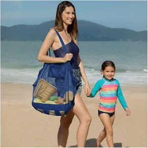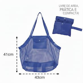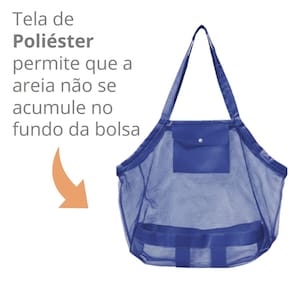Fabricado em tela de poliester permite que a areia não se acumule no fundo da bolsa, uma vez que é LIVRE DE AREIA!