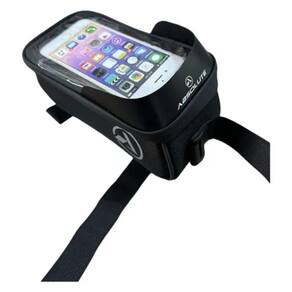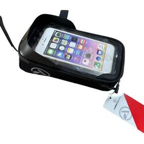 Bolsa de quadro para bicicleta com suporte para celular. Design moderno e discreto na cor preta. Permite acesso rápido ao dispositivo para navegação GPS, controle de músicas ou atendimento de chamadas. Construção robusta e estrutura inteligente para transportar itens essenciais como chaves, documentos, ferramentas ou lanches. Fixação prática.