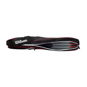 Wilson Advantage III Bolsa tripla para raquete de tênis - preta/branca/vermelha, comporta até 3 raquetes - Wilson Advantage III Bolsa tripla para raquete de tênis - preta/branca/vermelha, comporta até 3 raquetes - Compartimento principal comporta até 3 raquetes para adultos, equipamentos e roupas maiores - Compartimento secundário profundo na frente oferece amplo espaço para objetos pessoais - Wilson Logotipo na frente - Compartimento completo para raquetes: o compartimento envolve totalmente raquetes, equipamentos maiores e outros equipamentos.