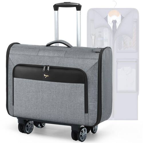 Tonyeee Sacos de vestuário com rodinhas Softside, bolsa grande com rodas, 3 em 1, bolsa de bagagem de mão para mulheres e homens, viagem de negócios, fim de semana, cinza - ?Bolsa de roupa 3 em 1?Com o design elegante de combinar a função de enrolar a bolsa de roupa e bolsa esportiva, a bolsa esportiva não é apenas uma bolsa de terno de negócios, mas também uma ótima bagagem esportiva para itens essenciais de viagem de fim de semana. Esta bolsa esportiva com rodas liberará suas mãos, e a alça resistente com fivela facilita a coleta, é uma escolha sólida para quem está indo para uma viagem de negócios ou uma escapada de fim de semana. - ?Bolsa de transporte limpa e desenrugada? Quando esta bolsa esportiva é aberta e disposta, a seção de 121,2 cm C × 51,2 cm L cabe no tamanho de ternos, jaquetas ou casacos regulares de 122 cm. Com um compartimento tão grande, você pode viajar com ternos ou vestidos que não amassam. Chega de rugas em seu vestido ou terno. - ?Bagagem de vestuário de 4 rodas?Rodas lisas e duráveis - as rodas de skate em linha de alto desempenho têm um invólucro resistente a impactos. A placa de suporte e a placa antiderrapante na parte inferior podem manter a bolsa esportiva equilibrada - ?Zíper, durável e resistente à água?Esta bolsa de roupa com rodinhas é feita de tecido de poliéster resistente a arranhões, rasgos e resistente à água e equipada com zíper de alta qualidade - suave e forte o suficiente para fechar. E a alça ergonômica de alta resistência com fivela, alça telescópica forte e flexível nesta bolsa esportiva com rodinhas oferecerá a você uma viagem mais fácil e confortável. - ?Bolsa de vestuário com grande espaço?A bolsa de viagem com 4 bolsos internos pode organizar bem seus pequenos itens delicados. E 1 bolso externo de computador para guardar facilmente seus itens essenciais de viagem – o frontal é capaz de guardar revistas, o bolso traseiro e direito é capaz de organizar seus pequenos itens como canetas, passaportes e chaves, etc. É uma escolha prática e elegante para suas viagens ou como um presente para sua família e amigos.