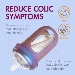 Boon Nursh – Mamadeiras reutilizáveis de silicone – Bico de fluxo médio – Bolsa e bico de silicone – Essenciais para alimentação do bebê – Metálico – 3 – 3 unidades – 227 g - Reduz os sintomas de cólicas: o design inteligente das mamadeiras Boon apresenta alimentação sem ar que evita gases e cuspe com uma bolsa que desmorona quando o bebê bebe; não há necessidade de aberturas ou válvulas complicadas - Segurança do silicone: a única coisa com a qual o leite do seu bebê entra em contato é o silicone 100% seguro para alimentos do bico e da bolsa; feito sem BPA ou PVC - Latch On: Os bicos de mamadeira Nursh são fáceis para o seu bebê agarrar com uma forma e comprimento que incentivam o posicionamento adequado da língua enquanto aprendem a se alimentar - Seguro para lava-louças: com bolsas reutilizáveis e peças mínimas, limpar (e se preparar para a próxima rodada) é fácil; o material de silicone também pode ser fervido, esterilizado e congelado com segurança - Alimentação que se adapta à sua vida: com vários acessórios Nursh para escolher, é fácil encontrar exatamente o que você precisa; confira tampas de armazenamento, pãezinhos, bolsas, mamilos e muito mais! (vendido separadamente)