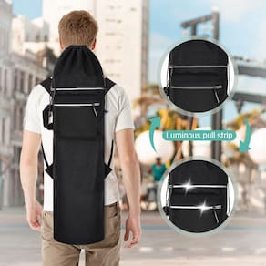 -?Confortável e portátil?A capa de skate foi projetada com alças duplas para reduzir a pressão no ombro. Também é equipado com uma alça, que pode ser carregada no ombro ou na mão, muito confortável e portátil. O design de abertura com cordão da bolsa de skate faz com que ela tenha a função de ajuste rápido de alongamento e fechamento. A bolsa de armazenamento de skate é dobrável e pode ser facilmente dobrada para armazenamento quando não estiver em uso.