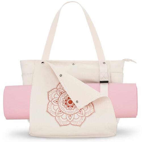 Gonex Bolsa de ioga com tapete para levar e tirar facilmente, lona de algodão durável, vários bolsos, zíperes de metal SBS. - Patente pendente. Design de armazenamento rápido e fácil: a frente da bolsa de ioga pode se desdobrar, facilitando o armazenamento do seu tapete de ioga. Não há necessidade de se preocupar em encaixá-lo e não ocupará nenhum espaço dentro da sacola. O uso de botões e alças permite armazenamento rápido e garante que o tapete de ioga permaneça seguro sem cair - Sacola de grande capacidade com vários bolsos: 51 x 33 x 13 cm, espaçosa o suficiente para acomodar ioga e outros itens esportivos. Possui 2 bolsos laterais para garrafas de água. Dentro da bolsa de ioga, há um pequeno bolso com zíper para armazenar pequenos itens como chaves e telefone - Durabilidade a longo prazo: feito de lona de algodão, durável e repelente de água. Zíperes SBS macios e resistentes são projetados para uso prolongado. A borda costurada garante que o carregador de ioga seja resistente a rasgos - 1 bolsa para qualquer lugar: não só pode ser usada para armazenar um tapete de ioga, mas também pode servir como uma bolsa de ginástica ou ser usada para atividades diárias como compras, academia, viagens - Padrões chiques: esta bolsa vem com padrões delicados relacionados à ioga, injetando mais energia e dinâmica para sua prática de ioga e fitness
