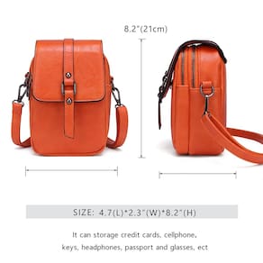 myfriday Bolsa tiracolo vintage para celular feminina, pequena bolsa de ombro de couro e bolsa de mão com decoração de borla e rebite, A - laranja - Materiais premium – A bolsa transversal para celular é feita de couro PU leve e durável. As ferragens de metal dourado de alta qualidade são altamente resistentes à ferrugem e os zíperes são suaves o suficiente, não há necessidade de se preocupar com problemas de fixação. - Grande capacidade – Dimensão da bolsa do telefone: 4,7" (12 cm) * 2,3" (6 cm) * 8,2" (21 cm), cabe até 6,4 polegadas, como serve para Samsung S8/9/10 S8+/9+/10+ iPhone X, xr max, etc. Desde que seu telefone seja pequeno que essa dimensão, não importa o tipo de telefone pode servir. - Estrutura: 2 bolsos principais com fecho de pressão, a camada externa pode ser conveniente para guardar seu celular e a camada interna com um compartimento, todo o bolso interno é maior do que o bolso externo, facilitando a colocação de seus pequenos itens como chaves, batons, cartão e papel de guardanapo para uso diário. - Unidade – A bolsa com uma alça de ombro ajustável e removível pode ser usada como bolsa transversal, bolsa de ombro ou carteira de telefone clutch o fecho de pressão é magnético e esse é um bom recurso para prender rapidamente a aba fechada, mantém seu telefone seguro e fácil de abrir para uso prático. - Dicas importantes - Esta bolsa de couro só pode ser limpa e não lavada. Se você acidentalmente ficar sujo, limpe-a suavemente. E é normal que haja diferença de cor devido à luz e à tela de exibição.