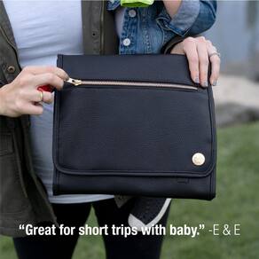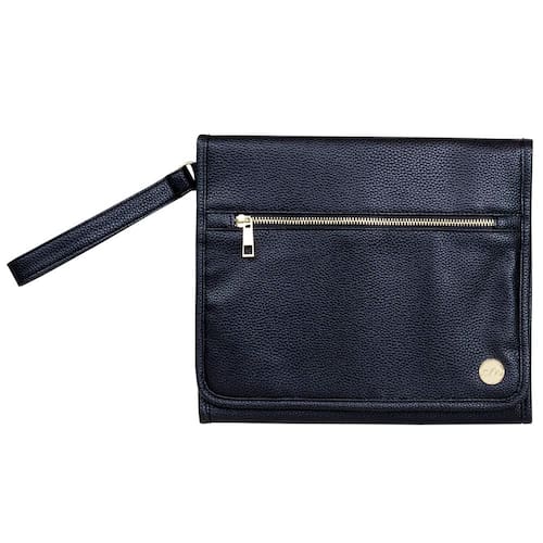 CleverMade Trocador de fraldas portátil com alça de pulso – Tapete de troca de fraldas dobrável premium resistente à água com bolsos de armazenamento para fraldas e lenços – Preto - Conveniência multifuncional – solução perfeita de transporte com uma só mão para todos os seus itens essenciais de troca de bebês; carrega todos os seus itens essenciais para viagens e atividades como passeios de um dia, compras, encontros de brincar e muito mais - Bolsos de armazenamento inteligente – bolso frontal externo com zíper mantém todos os itens pessoais seguros; bolso interno mantém as fraldas seguras; seção adicional para guardar lenços umedecidos para qualquer surpresa repentina - Uma mini bolsa de fraldas em si mesma: jogue-a na sua bolsa ou bolsa grande ou use a bolsa de pulso para levá-la para qualquer lugar; o kit de trocador é dobrável e facilita a troca de fraldas de bebê - Funcional e elegante – Nossa bolsa para troca de fraldas é feita com um material de couro vegano durável para suportar o uso diário dos pais. Tanto por fora quanto por dentro podem ser facilmente limpas com um pano molhado - Dimensões: dobra até 29 cm C x 25 cm L x 3 cm A, o que o torna muito fácil de carregar com a alça de pulso; então, quando o doody chama, abre para uma superfície acolchoada de troca de 71 cm C x 28 cm L