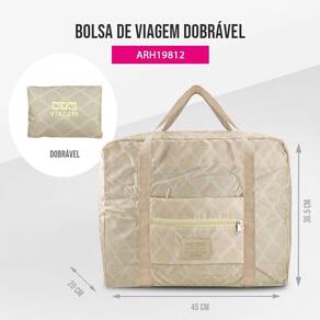A Bolsa de Viagem Dobrável GG da Jacki Design é um produto dos sonhos: Possui amplo espaço interno e compartimento para acoplar na alça retrátil da mala e facilitar no transporte. Pode ser dobrada num pacote pequeno quando não está em uso, e quando necessário se transforma numa bolsa espaçosa! Versátil e bonita, traz harmonia e organização para sua viagem. ATENÇÃO: Esta bolsa não é adequada para o dia-a-dia. Por ser dobrável, possui um tecido fino e extremamente maleável, feito de poliéster, o que não permite carregar sobrepeso. Ideal para transportar roupas, entre outros produtos leves. CUIDADOS GERAIS: Limpe a bolsa com um pano úmido. Caso necessário, use sabão neutro ou álcool para higienizar o local. Deixe secar na sombra. ATENÇÃO: Para preservar a vida útil do produto, recomendamos não deixar a bolsa de molho, não levar a máquina de lavar e também não utilizar produtos químicos.