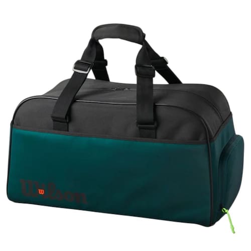 A bolsa duffel Super Tour da Wilson oferece versatilidade e conveniência para viagens com um visual limpo e profissional que combina com o design elegante e dinâmico da V9.