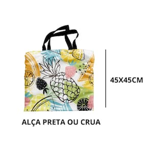 Fabricada com tecido lavável, com estampas de design único e despojado. Ideal para suas compras em mercados, farmácias, shopping, feira, padaria ou praia.