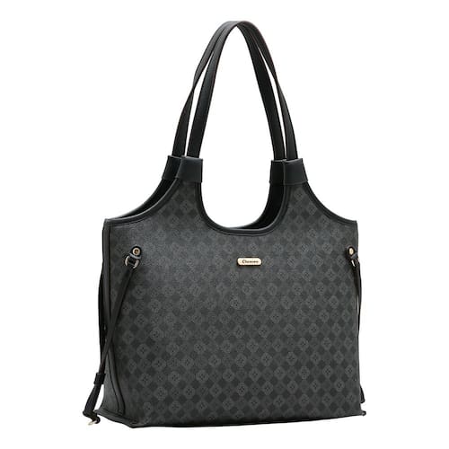 DESCRIÇÃO DO PRODUTO Modelo: Bolsa Elemento Gráfico Casual Marca: Chenson Material: Poliuretano impermeável Cor: Preto Fechamento: Zíper Formato: Bolsa de ombro estilo tote