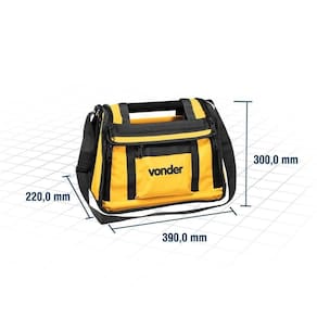 Destaques Comercial: Bolsa em lona reforçada com alças em nylon, fundo plástico à prova d'água e 30 compartimentos.