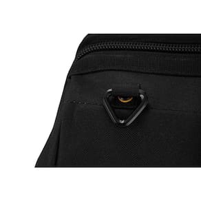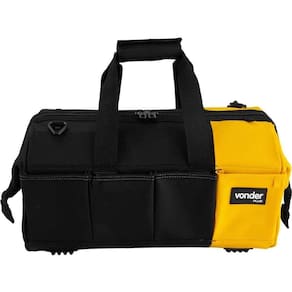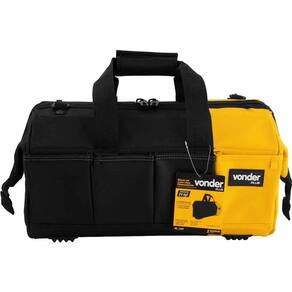 Destaques: Confeccionada em lona reforçada, com reforço metálico na parte superior, alças para transporte reforçadas, zíper duplo reforçado, fundo e laterais com plástico reforçado. Conta com 4 apoios plásticos na base. Possui abertura total e 32 divisões/bolsos, sendo 28 internos e 4 externos.
