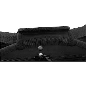 Destaques: Confeccionada em lona reforçada com alças acolchoadas e alça de ombro ajustável que adicionam conforto extra ao transportar a bolsa com carga. Com abertura total com zíper duplo, 55 divisões/bolsos, sendo 45 na parte interna, 10 na parte externa e ainda 5 cintos na parte externa para armazenamento. Possui base plástica rígida e impermeável.