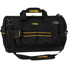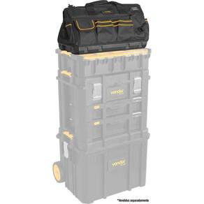 Destaques: Confeccionada em lona reforçada, com reforço metálico na parte superior, alças para transporte acolchoadas e alça de ombro ajustável, zíper reforçado, fundo plástico reforçado e à prova d'água. Possui abertura total e 43 divisões/bolsos, sendo 26 internos e 17 externos. Permite ser acoplada no Organizador Plástico OPV 900 (61.08.009.000), Caixa Plástica para Ferramentas CPV 900 (61.05.000.900) e Caixa Plástica para Ferramentas, com Rodas, CRV 900 (61.05.090.000) (não acompanham).
