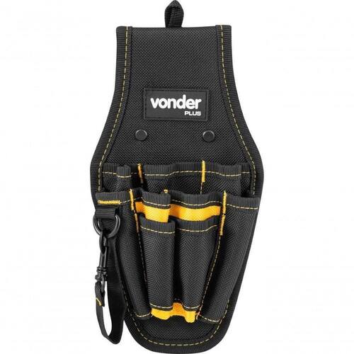 Confeccionado em lona reforçada, possui alça passante para cinto. Conta com 9 bolsos/divisões e 1 alça com presilha metálica.
