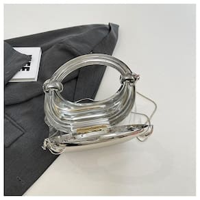 GSYPS Bolsa clutch de acrílico para noite com alça superior Moon Hobo, elegante bolsa de mármore para festa de coquetel de casamento, D - prata - Design elegante: esta clutch de acrílico para noite com designs em forma de lua, única e simples. Ela deixará você elegante e excepcional em eventos especiais. - Material: Esta bolsa de noite metálica é feita de acrílico de qualidade premium, ferragens metálicas, lisas e duráveis. Combina facilmente com suas roupas em diferentes cores e estilos - Capacidade: Aproximadamente 9,4 cm C x 3,5 (L) x 9,8" A, (24 x 9 x 25 cm), peso: 0,44 kg/0,97 libras. Esta bolsa de forma única é conveniente para carregar, pode guardar telefone, chaves, dinheiro, cartões, batons, perfume, espelho pequeno etc - Forma de transporte: a bolsa clutch de acrílico com uma corrente removível de fecho oculto para sua escolha, você pode usá-la como bolsa de ombro/tiracolo ou bolsa de pulso, para atender aos seus diferentes estilos - Ocasião: perfeita para festa de casamento, baile, banquete, coquetel, reunião de família. Também é uma ótima opção para encontros, compras, viagens ou outras ocasiões. Também é o melhor presente para esposa, noiva, mãe, amante, amigas, etc