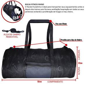 Indicação de uso: a bolsa esportiva rhino combina tecnologia, design moderno e praticidade. Sua tela vazada proporciona maior ventilação para seus equipamentos esportivos antes ou pós treino, evitando mau cheiro por mais tempo. O amplo espaço principal guarda os itens, enquanto o fechamento em zíper fornece segurança. O material durável garante resistência.