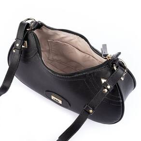 Bolsa monocolor com ou sem textura. A Bolsa Dakota é confeccionada em material sintético, a prata se destaca a textura em toda sua superfície, assim como as aplicações metalizadas, e na preta o destaque fica por conta das aplicações metalizadas em sua superfície. Com fechamento em fecho-éclair, o acessório tem amplo espaço interno com uma pequena divisória interna. Conta ainda com alça ajustável curta que permite seu uso de diversas maneiras!