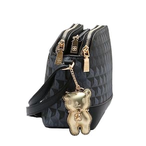 O modelo possui fechamento seguro e um espaço interno cuidadosamente estruturado, permitindo armazenar pequenos objetos com facilidade e organização. O bolso traseiro é um aliado na rotina, oferecendo acesso rápido a itens essenciais, enquanto a alça transversal ajustável proporciona conforto e versatilidade no uso. O charme especial fica por conta do delicado detalhe de ursinho, que adiciona um toque de originalidade e personalidade ao visual, tornando a peça ainda mais encantadora.