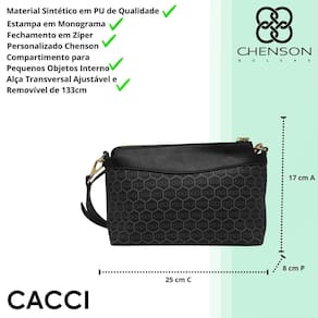 A Bolsa Feminina Chenson une elegância, praticidade e design moderno em um só acessório. Produzida em material sintético de alta qualidade, apresenta textura suave e durabilidade que acompanha o ritmo do dia a dia. Seu acabamento refinado e o monograma exclusivo da marca reforçam o estilo sofisticado e o cuidado em cada detalhe, tornando-a ideal para compor produções com personalidade.