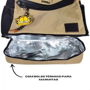 - Vamos destacar suas especificações inspiradoras: - Material principal em nylon crinkle e duplo telado, que oferece resistência e um visual esportivo sofisticado. - Detalhes marcantes em PVC e pespontos, evidenciando a qualidade e o cuidado na confecção. - Alça acetinada que proporciona conforto para o ombro, independentemente do peso carregado. - Zíper tratorado robusto, que confere um toque urbano ao design e segurança aos itens armazenados. - Acompanha chaveiro emborrachado com detalhe de cadarço, trazendo um charme a mais e a irreverência do Garfield. - Banho de metal ônix, contribuindo para um visual moderno e durável. - Forro interno laranja, facilitando a visualização dos objetos dentro da bolsa. - Bolso externo no verso, ideal para guardar itens que necessitam de acesso rápido. - Divisórias internas inteligentes que ajudam a manter tudo organizado. - Bolso telado para itens menores e um exclusivo bolso térmico, perfeito para conservar alimentos e bebidas na temperatura desejada.
