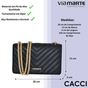 Com medidas bem planejadas, o modelo possui 20 cm de comprimento, 12 cm de altura e 5 cm de largura, ideais para acomodar itens essenciais de maneira prática. O comprimento da alça, com 120 cm, possibilita diferentes ajustes, permitindo utilizar a peça da forma que mais se adapta ao estilo e ao ritmo de cada pessoa. A proposta desta bolsa Via Marte é entregar versatilidade, presença e conforto em um único acessório, tornando-se uma excelente escolha para quem deseja unir beleza, utilidade e durabilidade no mesmo produto.