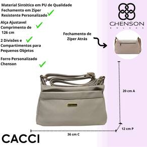 A alça ajustável com comprimento de cento e vinte e seis centímetros proporciona conforto e liberdade no uso, seja no ombro ou na transversal. O forro interno personalizado Chenson reforça o cuidado nos detalhes e o padrão de qualidade da marca. Um modelo que une beleza, praticidade e estilo, pensado especialmente para mulheres que valorizam elegância e funcionalidade em todos os momentos.