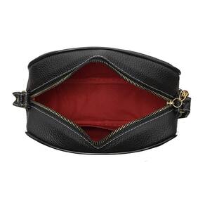 Bolsa tamponado confeccionada em material sintético de alta qualidade, com metal dourado na parte frontal, material interior com forro TNT reforçado vermelho, bolso interno sem zíper, com alça regulável de ótima qualidade.