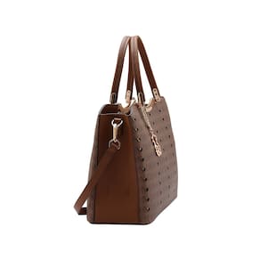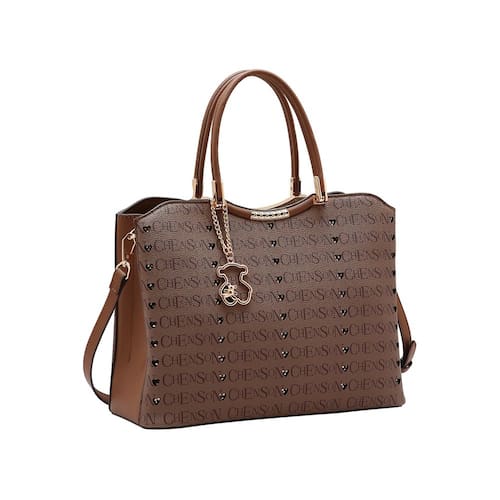 DESCRIÇÃO DO PRODUTO Modelo: Bolsa Feminina Estruturada Cristal Monograma Marca: Chenson Material: Poliuretano impermeável Cor: Café Fechamento: Zíper Divisórias: 3 compartimentos principais