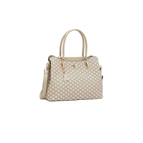 DESCRIÇÃO DO PRODUTO Modelo: Bolsa Feminina Estruturada Marca: Chenson Material: Poliuretano impermeável Cor: Natural Fechamento: Zíper