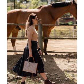 BOLSA FEMININA CHENSON MONOGRAMA ELEGANCE Bolsa feminina Chenson com estilo clássico e detalhes modernos, ideal para quem busca elegância e estrutura no dia a dia. O design estruturado mantém a forma da bolsa, garantindo um visual sofisticado em qualquer ocasião. Com três divisórias internas, oferece excelente organização, além de versatilidade de uso com alças de mão e alça transversal removível. Acompanha chaveiro com espelho, funcional e charmoso.