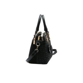 DESCRIÇÃO DO PRODUTO Modelo: Bolsa Feminina Relevo Monograma Marca: Chenson Material: Poliuretano impermeável Cor: Preto Fechamento: Zíper Formato: Estruturado Divisórias: 3 compartimentos independentes