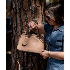 Possui três divisórias independentes que facilitam a organização do dia a dia, além de alças de mão e alça transversal removível, permitindo diferentes formas de uso. Acompanha um prático chaveiro de espelho da marca, agregando funcionalidade e charme.